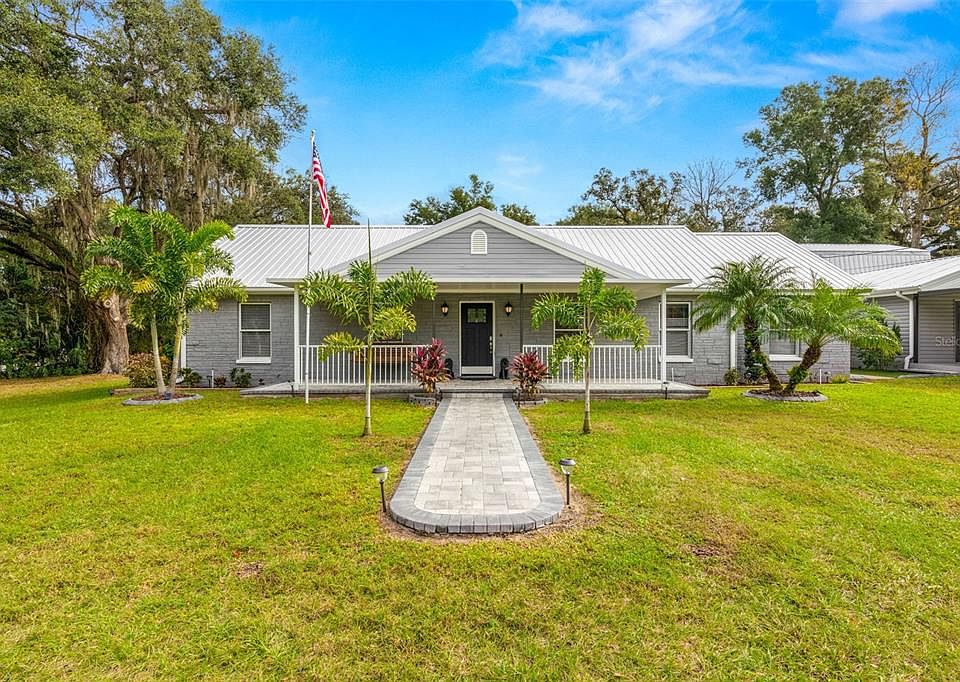 Looking for your very own tranquil estate with all the bells and whistles of modern living? You're home... this tastefully renovated ranch has 4 bedrooms, 2 full baths, formal dining, a large bonus room, front and back covered porches plus a party size lanai with huge deep pool. The well-manicured property enjoys 2.4 acres of natural, beautiful landscaping. Oversized detached garage and workshop area include a large loft that could easily be converted to an apartment or mancave. If you're still looking for more space, the 25x35 foot attached carport or 15x75 foot RV / parking pad checks all the boxes. Newer steel roof, extra insulation, concrete septic tank, newer well pump too with a massive fiberglass holding tank, whole house GE water filter; 15 minutes to Tampa and a half hour to TIA... country living close to everything. Come see!