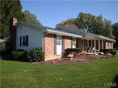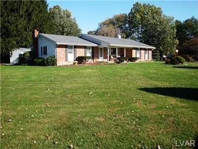 East Penn SD Ranch has is all! Enjoy tasteful, neutral amenities in over 2,000 SF of Living Space on large corner lot in Shepherd Hills. All the right things have been updated in this 4BR, 2BA home. Upgrades:Kitchen w/maple cabs, corian counters & breakfast bar, refrig, smooth-top range, DW, MW & Disp; architect shingle roof, vinyl siding, tilt windows. Bright fin bsmt has huge FR w/brick wall FP & dbl wood mantles. Bsmt also offers add'l bed/study/exercise rm, full bath, storage rm & custom cedar closet. Enjoy front porch area & backyard oasis w/screen patio (Hot Tub), & paver patio w/canopy. Overszd 2-car gar has util sink & pull down attic. Econ electric "zoned" heat. Central A/C. Custom shed. 1st fl laundry (W/D remain). Low taxes & conv lower Macungie location. 1 yr warranty.