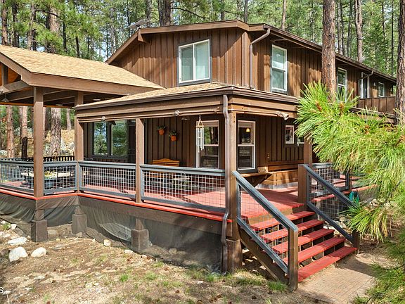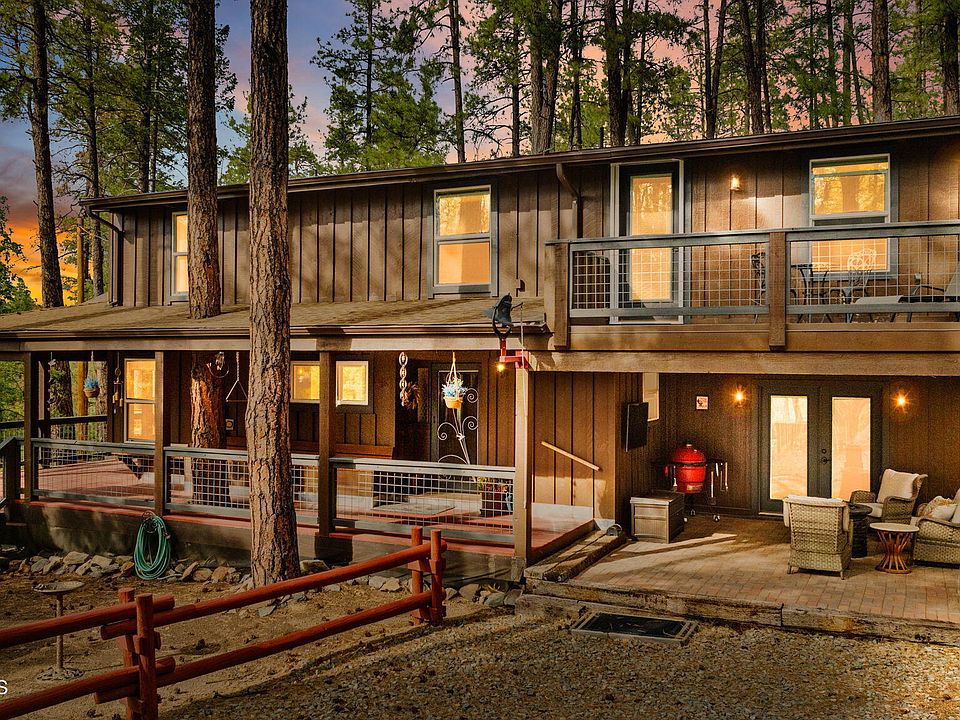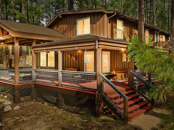 Beautifully finished 2-bedroom, 1 full bath & 1 half bath mountain home w/ a large open loft on a peaceful & usable 1.08-acre lot in the pines. This 2,115 sq ft home offers an open layout with modern finishes, ideal for year-round living or weekend getaways. Enjoy a spacious outdoor entertaining area surrounded by tall pines & nature. The property includes a 1,575 sq ft 4-car garage plus a 600 sq ft finished office--perfect for remote work, hobbies, or guest space. Located just minutes from paved Walker Rd. Only 10 minutes to Lynx Lake, 15 to Costco, & close to trails and recreation. Rare chance to own a move-in ready, upgraded home in one of Prescott's most desirable mountain areas. Whether full-time or part-time, this versatile retreat is a must-see