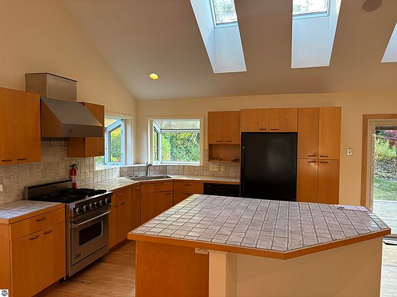 OLD MISSION PENINSULA is the setting for this newly listed home. You will love the close proximity to schools and all the amenities of living close to downtown Traverse City. As you begin your tour, you will discover open living spaces great for entertaining family and friends. The spacious living room with large picture window providing plenty of natural light and gorgeous views, vaulted ceilings, built-in bookcases, hardwood floors. The kitchen is enhanced by modern cabinetry, professional style appliances, skylights and an island with bar seating. Sliders lead you to the deck for dining al fresco, the awning will provide shade on hot summer nights and your lawn will be a perfect backdrop for creating memories with family and friends. Additionally, you will discover three main floor bedrooms, 2 baths; a lower level with a large family room and a workshop, ideal for the crafter or handyman in your household. The sauna will be great for relaxing. The garden shed offers extra storage space plus there is a 2-car garage. Desirable Traverse City school district. This home is ready to welcome your family!
