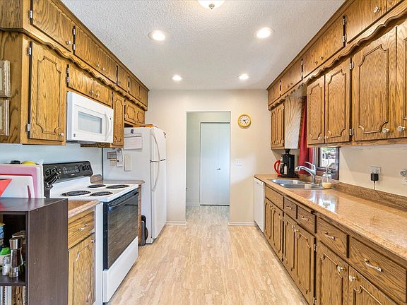 Beautiful rambler home in a park-like private setting. Warm & inviting Foyer with coat closet, opens to the Kitchen with tons of oak cabinets, great counter/storage space & newer flooring. Built-in desk & buffet opens to the Dining area with oak flooring. The sun-filled living room with gleaming oak floors and vaulted ceiling walks out to expansive sun room - great entertainment space that walks out to your newly stained deck overlooking park. 3 bedrooms on one level all have oak flooring and spacious closets. Primary bedroom features private 3/4 bathroom. Lower-level Family Room walks out to your patio and fenced yard. Family Room features a gas fireplace. Kitchenette/craft/exercise Room off Family Room is plumbed for a sink. Half-bath could be expanded to a 3/4 bathroom. Spacious 4th bedroom and Study/guest room. Great storage space in Laundry Room. Fenced yard with gate to park behind and walking trails. Close to schools, shopping & hwys. New roof, siding & gutters.