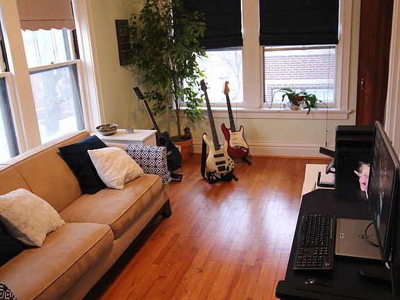 The unit includes 3 bedrooms/2 baths, plus a "bonus" office/sunroom. Other rooms are kitchen, butler's pantry, dining room, living room, and there's a hallway with another built-in storage unit and linen closet. In unit washer and dryer, and covered garage for one car. Outside there is a private deck overlooking a garden that's perfect in the spring, summer and fall. There is also a basement storage locker. Wonderful building with character and friendly tenants.