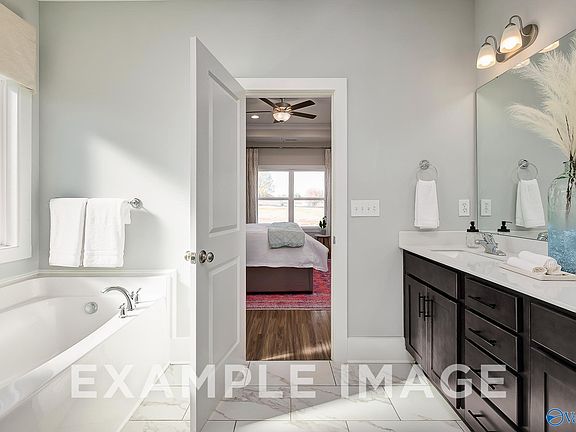 Move in Ready!!The Everett Plan exudes elegance with its expansive single-story layout spanning over 2100 square feet. This ranch-style residence boasts 4 spacious bedrooms and 3 luxurious bathrooms, including a separate garden tub and shower for added refinement. The interior is adorned with luxury vinyl floors that add a both beauty and longevity, complemented by high 9-foot ceilings throughout that highlight the feel of spaciousness in every room. The kitchen features granite countertops, enhancing both functionality and elegance highlighting the time tested open concept. Situated on a large lot backing up to serene wooded areas, find this hidden gem in the Spragins Cove Community.