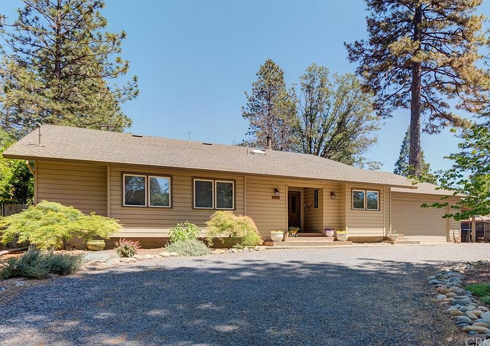 Beautiful home in desirable west Paradise nestled amongst the tall pines just minutes away from Bille Park and Paradise trail way. Fabulous spacious floorplan offers 3 large bedrooms, 2 full baths plus a den. The den can easily be used as a 4th room or would make a great home office/small business as it has a private entry. Living room, kitchen and master bedroom bring plenty of light with large windows across the back of home all leading you to the oversized deck. The open floor plan offers plenty of living space with large kitchen, gracious dining area and spacious living room that features a beautiful rock hearth (complete with heat transfer system). Master bedroom provides his/her closets, large master bath, oversized vanity and a jetted soaking tub. If you are needing more space... YOU FOUND IT! There is a large over 800 sq foot detached garage/shop complete with a private office and bath in addition to the two car attached garage. Shop and garage have 220V and easy access with additional boat/RV parking. Large laundry room and additional attic storage with easy access make this home just perfect for all your needs. New roof in 2008, newer HVAC system and solid 3/4 inch hickory hardwood flooring throughout include just a couple of the recent upgrades. Schedule a showing today!