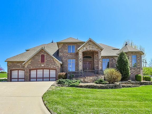Stunning and sophisticated, this 5-bedroom, 3 full and 2 half bath estate sits on a .61-acre lot in the exclusive Rivercut golf course community. Step through the newly refinished double front doors into a grand entry with Brazilian Cherry hardwood floors, a dual staircase, and soaring ceilings that bathe the home in natural light. The chef's kitchen is a true highlight, featuring sleek Bosch appliances, designer faucets, expansive countertops, and custom maple cabinetry. A generous center island with a prep sink and oversized walk-in pantry seamlessly flows into the inviting hearth room with a gas fireplace and direct backyard access, perfect for both daily living and elegant entertaining. The main-floor primary suite is a serene retreat with a cozy fireplace, sitting area, patio access, and dual walk-in closets. The spa-inspired ensuite bath includes a newly tiled shower floor, upgraded fixtures, dual shower heads, a jetted soaking tub, and a spacious vanity area. An additional main-floor bedroom is ideal for a home office or guest suite. Upstairs, find 3 generously sized bedrooms, including 2 connected by a Jack-and-Jill bath and one with a private ensuite. A loft area offers a secondary living space, plus two walk-in attic areas for ample storage. This home boasts recent upgrades, including a new HVAC system with 2000 Cleaning System and air scrubber, new Samsung washer and dryer, updated shower doors and hardware, fresh paint, and a new wood privacy fence with two gated entries. Located in the highly rated Kickapoo School District, within Rivercut's prestigious golf course community, residents also enjoy access to resort-style amenities such as a clubhouse, pool, and walking trails. Schedule your private showing today!