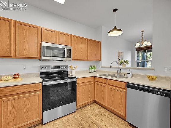 This beautifully updated two-story townhome offers comfort, style, and a low-maintenance lifestyle in Northeast Colorado Springs. Step inside to discover a refreshed interior showcasing new paint throughout, brand-new carpet, updated appliances, and modern electrical and plumbing fixtures. The original hardwood flooring on the main level adds a touch of timeless character, blending perfectly with the home’s fresh, modern finishes. The open-concept main floor provides a bright, inviting living space that flows seamlessly into the kitchen and dining area—ideal for everyday living or entertaining guests. Upstairs, the thoughtful layout includes a spacious primary suite complete with a walk-in closet and private ensuite bath, along with a second bedroom conveniently located near another full bathroom. An attached two-car garage provides secure parking. Schedule a showing and experience the charm and comfort of this lovely home. All information is deemed reliable but should be independently verified.