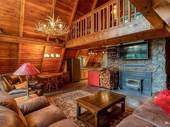 The mountain retreat of your dreams! This beautifully updated 2 bed 1 bath A-frame cabin is nestled within the trees of a private community directly across from the old Spout Springs Ski Resort. Vaulted ceilings greet you as you step into this completely furnished, turn-key cabin with room for everyone! Updates include a tastefully renovated bath and kitchen, newer metal roof, durable vinyl flooring, finished laundry room, and security system with Smith Security. This cabin leaves absolutely nothing to be desired. Just a fraction of the items included in this mountain-lovers retreat are kitchen appliances, mounted flat screen tv, two grills, patio furniture, five beds, and SIX snowmobiles. Come see it for yourself and fall in love.