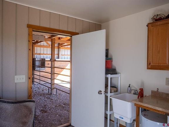 Leather Ridge Estates sits in a quiet neighborhood in Montrose, Colorado. This luxury 18-acre horse property is in a spectacular location with breathtaking views of the San Juans to the South. The 3,619 sqft home had a complete custom remodel 2 years ago and is sure to amaze as you walk in the door. Granite countertops, custom cherry cabinets, steam shower, surround sound stereo indoors and out, natural stone and hardwood floors, gas log fireplace, and the list goes on. The master bedroom and suite bath offer a deep soaking jetted tub, separate tiled steam shower, dual vanities, and the soothing sounds of the canal as you step out onto the private balcony. Magnificently landscaped with mature trees and a well-groomed yard with an underground sprinkler system, this property offers a low maintenance upkeep. The 24x26 shop, 3-car and 2-car garages offer spacious workspaces for all summer and winter projects. The 17 irrigated acres have been split into 8.5 parcels, each with their own water tap. The gated pipe irrigated land produces on average 3 hay cuttings per year. The open 72x138 arena has its own sprinkler system to keep the dust down and the area cool during the summer months. Leather Ridge Estates horse facilities are adequate for the ideal size equine enthusiast, a few stalls, automatic waterer, and heated tack room.