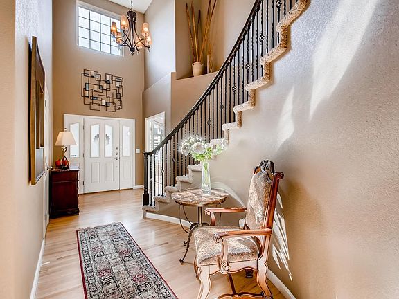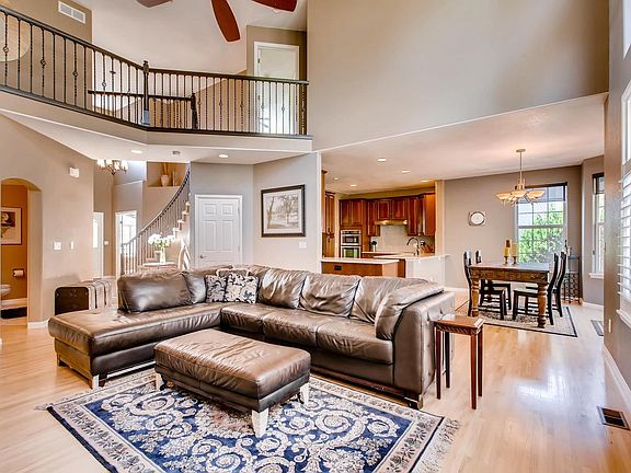 Incredible! Gorgeous! Impeccable! Coveted and rarely available Bramante neighborhood in Cherry Creek schools. Spacious & comfortable 5 bedroom/5 bath home in a cul-de-sac with wide open floor plan. Location is unmatched, the home shows pride of ownership throughout. Enter into the beautiful foyer and find yourself in the Great Room, highlighting 18' ceilings and wall of windows. Plenty of natural light to show off this amazing floor plan. Main floor master, hardwood floors, gas fireplace with stone surround, granite & stainless kitchen, office with French doors, large mudroom, and 3 car garage! Beyond the grand staircase, you'll find 3 additional bedrooms & 2 full baths upstairs. Private, fully landscaped backyard with redwood deck installed within last 2 years. Huge 1800 sq foot finished basement with bedroom, ¾ bath, flex space and tons of storage space. All the amenities & comfort you and your family need to make this one your own - move in ready. AC/Furnace only 2 years old.