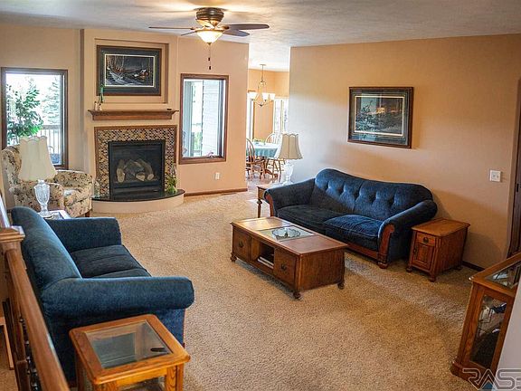 Spacious 5 Bedroom/3 Bath Ranch WO home with 4 Stall Garage located in Southeast Sioux Falls. This family friendly floor plan allows for large gatherings as well as private spaces. The Living Room has a beautiful gas fireplace which leads you to the window filled Dining Room. The kitchen & dining areas have a walk out to both the covered and uncovered decks. Kitchen features Dakota Kitchen and Bath cabinets, tile back splash, pantry & SS appliances. 3 BR's on the main including the master suite with large walk-in-closet & bathroom with double vanity, walk in shower & air tub. Main floor laundry with folding counter & sink. The lower level has so many possibilities with an open floor plan between the family room, exercise room, game room & walk-out to covered patio. Two additional bedrooms & a California style bathroom. All appliances stay including freezer & newer washer & dryer. Anderson windows. Garage has water, drain & is plumbed for furnace. Gorgeous backyard. This is a must see!