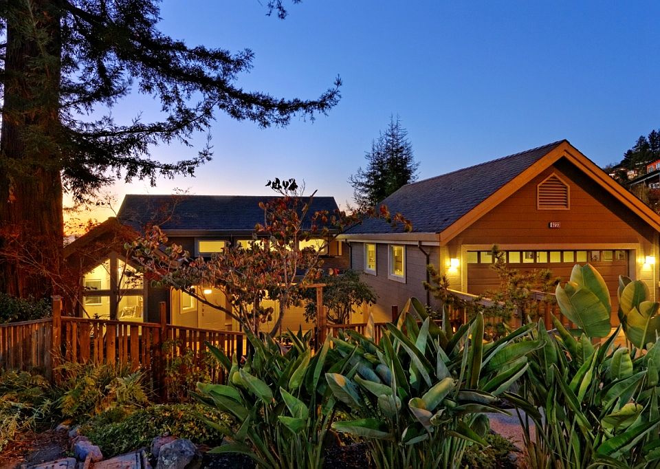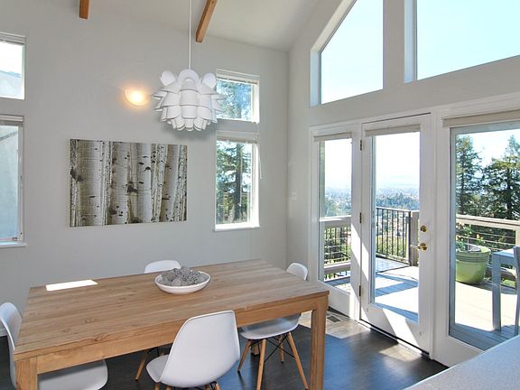 Welcome Home to 6233 Virgo Road, a gorgeous Montclair home with sweeping San Francisco Bay views of the city, Bay and Golden Gate Bridges, Mt. Tam, to the Oakland Hills. These dramatic views can be enjoyed from the living room, dining area/kitchen, every bedroom and two exterior decks. With nearly 2,000 square feet of elegant living space, this three bedroom, two and a half bath home features great natural light, hardwood floors, vaulted ceilings, fireplace and dual pane windows. Some home improvements include new carpet, new interior and exterior designer paint and new appliances. The upper level offers an open floor plan, perfect for entertaining. Great indoor/outdoor flow from the living room, bright dining area, spacious kitchen with skylight, to the larger outdoor deck. On the same floor is a gorgeous master suite with luxurious master bath. Relax and watch gorgeous sunsets from the separate tub with greenhouse-style windows. The master bedroom also has its own private balcony. Downstairs are two additional bedrooms and family room, each with its own access to the rear yard. This hilltop home also offers some level yard areas for your veggie garden and a greenhouse. A charming spiral staircase gives direct access to the yard from the upper level. Enjoy Oakland's great weather in the terraced courtyard, offering a peaceful retreat with patio, easy to maintain landscaping and redwood trees giving great afternoon shade. A detached two car garage and clear Charles Mayer Pest report completes this wonderful offering. Minutes to the lovely, quaint Montclair Village with shopping, dining and Sunday Farmers Market.