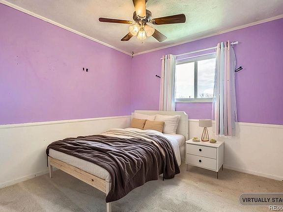 Welcome to this charming 5-bedroom, 3-bathroom ranch in Arvada's highly desirable Hackberry Hill neighborhood, complete with an attached garage! This home has a lot of updates, featuring a new 200-amp electrical panel, new garage door opener, new fence, new water heater, new backyard concrete and landscaping, new windows installed 5 years ago, and a new swamp cooler 2 years ago. The kitchen boasts stunning granite countertops, a decorative tile backsplash, and a bright kitchen nook. The main floor bathrooms and the primary bath have been fully remodeled with modern finishes, including a Jacuzzi tub in the Primary bath. The finished walk-out basement provides ample living space. The large, fenced backyard offers plenty of room for outdoor activities, and the additional parking beside the house is perfect for an RV or extra toys. Situated on an 8,276 sqft lot, this home is a must-see with updates and plenty of entertaining space. Don’t miss the opportunity to make this house your home! Some of the photos have been virtually staged. This home has an assumable loan @2.25% for 400k with a monthly payment of $2,626.67 Principal, Interest, Taxes and Insurance.
