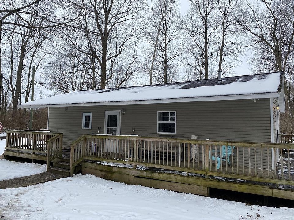 This home is nestled in the woods close to paradise lake. This home offers very beautiful hickory cabinets in the kitchen with a center Island, stainless steel appliances, washer/dryer and a newly remodeled bathroom. You can enjoy sitting outside watching the wildlife on a 8x52 covered deck.