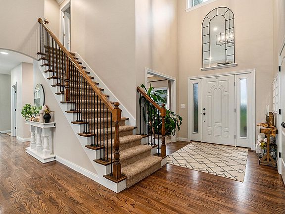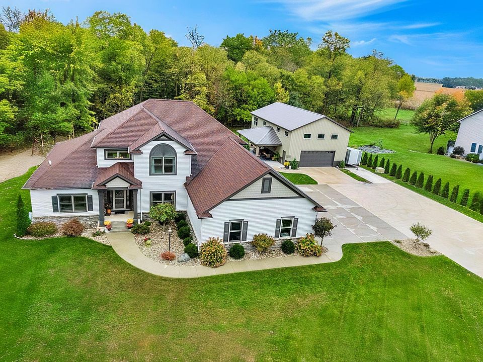 Experience the perfect fusion of refined comfort and versatile living in this stunning custom-built 2-story estate, nestled on 4.5 acres of open/irrigated yard and mature woods to explore. Offering over 4,100 sq ft of impeccably finished living space in the main residence—plus an additional 700 sq ft private guest apartment—this property is a rare gem in the desirable Wa-Nee School District. The heart of the home is a recently remodeled gourmet kitchen featuring professionally refinished cabinetry, gleaming quartz countertops, and a designer tile backsplash. A true entertainer’s dream, the kitchen boasts expansive prep, serving, and storage space for effortless hosting. Soaring ceilings and a dramatic two-story great room showcase a stoned gas fireplace flanked by built-in cabinetry, creating a warm, inviting ambiance. The main-level floor plan includes a flex space for den/office, then a spacious main-floor owner's suite with tile flooring, dual countertop height vanity, custom tile shower, soaking tub, and generous walk-in closet. Upstairs, three additional bedrooms include a junior suite with attached bath, plus an additional full guest bath. The newly finished daylight lower level provides even more living space with wet bar, ideal for recreation or relaxation, with two additional bedrooms and a fourth full bath. Step outside and enjoy serene evenings on your professionally landscaped patio, complete with ambiance and landscape lighting, surrounded by nature and privacy down the new 480’ concrete driveway. The attached 3-car garage offers ample storage, but the crown jewel is the 40’x60’ custom-built pole barn—a multi-use space that includes a fully finished guest suite/apartment with a full kitchen, living area, bathroom with walk-in shower, and loft bedroom. Separate HVAC ensures year-round comfort, making it perfect for a private guest retreat, hobby space, or Airbnb. Additional barn space accommodates car enthusiasts, sports practice, or toy storage. Whole house generator was installed in 2025 as well! Whether you're seeking peaceful country living, a multigenerational home, or a short-term rental opportunity, this property delivers unmatched flexibility, privacy, and style. Private showings available for pre-approved buyers only.
