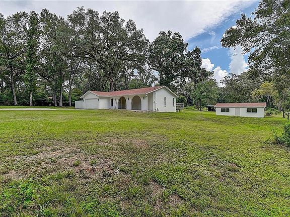 TWO BUILDINGS WITH OVER 3500 SQFT UNDER ROOF TOTAL! OVER 5 ACRES – AGRICULTURAL ZONING! LAKEFRONT/POND SETTING. **NO FLOOD INSURANCE REQUIRED**NO HISTORY OF FLOODING** MAIN HOUSE with RENOVATED INTERIOR - 2br/2ba/2gar 1518 SQFT LIVING Plus 500sqft Garage. DETACHED OFFICE/BEDROOM – 512 SQFT LIVING. OUTBUILDING – 1008 SQFT – MULTIPURPOSE with its own power, water, septic is great for an OFFICE/HOME BUSINESS, or it CAN BE CONVERTED to SECOND LIVING AREA, RENTAL UNIT, AIR BNB! The outbuilding was used as a HUGE DOG KENNEL 84 ft long with 28 Dog Runs. Possible horse stable, workshop or even gun range. Updated Kitchen with ALL NEW UPSCALE SAMSUNG APPLIANCES (refrigerator has a beverage center and automatic water pitcher filler in the fridge. All appliances have wifi connectivity) and NEW STONE COUNTERTOPS & Breakfast Bar! NEW LUXURY VINYL PLANK FLOORING THROUGHOUT, NEW high baseboards, NEW INTERIOR PAINT, ALL NEW INTERIOR DOORS, New exterior doors, ALL NEW OUTLETS & SWITCHES upgraded to 20 amps. No popcorn ceilings. Home features a Split Plan Design, spacious Master Bedroom with EN SUITE! There's a new double vanity now in the master bath. BRICK PAVERED DECK and front porch! 500sqft shed w/ windows, heavy shelves, covered patio to house oversized tools, agriculture, landscaping equipment etc. Horse stable for 2 horses w/water troughs, running water, fully functional lights and several outlets. PLENTY OF ROOM TO PARK ALL YOUR TOYS, TRACTORS, RVS, CAMPERS, EQUIPMENT & MORE! Large 28X16ft CONCRETE SLAB on left side of house! Prepped for roaming horses, cattle, dogs, chickens or raising plant nurseries, kitchen garden or commercial agriculture. Amazing wildlife on this farm including turkey nests, turtles, hawks, owls and other wild birds. Plenty of firewood to last you at least 10 years. ENJOY *SPECTRUM HIGH SPEED INTERNET* NO HOA, NO CDD and NO deed restrictions, so do what you want anytime you want, in addition its Ag zoning so cheaper property taxes! No flood insurance. Enjoy life with peace and tranquility on this amazing rural property with easy access to modern conveniences, and all attractions! Endless potential. Paved roads all the way to the property. Surrounded by other large parcels. Close to I-75 for quick access to the airport, Tampa, Clearwater and St. Pete Beaches (Ranked in the top 5 Beaches in the US).