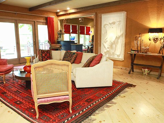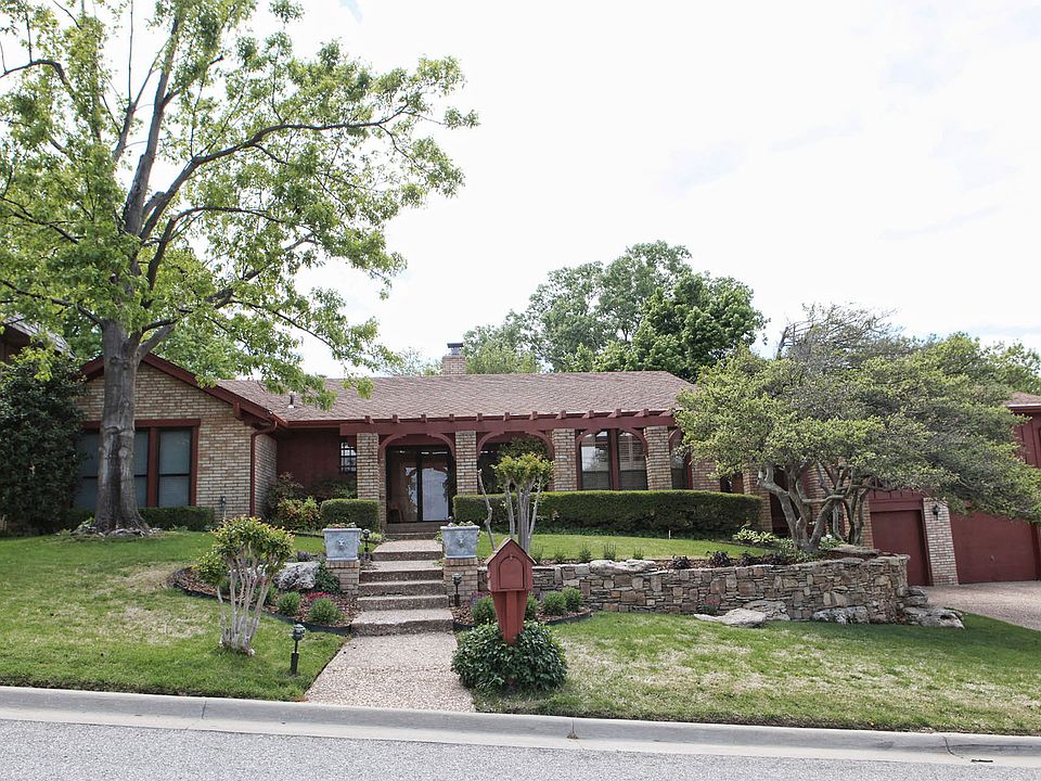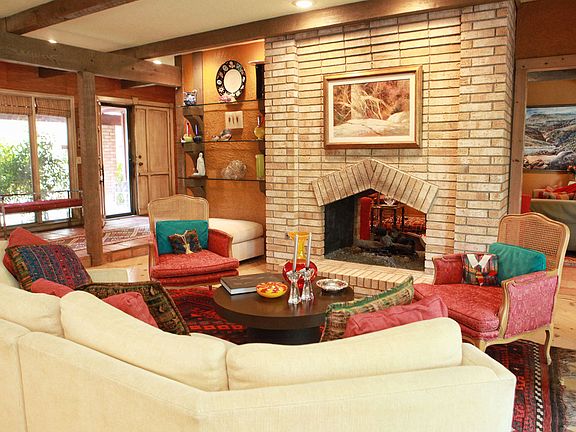 California Contemporary! Incredible living areas with see through fireplace. Updated kitchen with double ovens, great stainless counters and wonderful backsplash. Updated master bath with steam shower and vaulted ceiling. 4th bedroom could be a gameroom with built-in office. Nice pool, hot tub, and park like backyard!