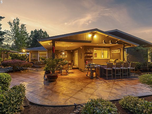 This beautifully updated 3-bedroom, 2.5-bath home offers the perfect blend of comfort, style, and outdoor living. Thoughtfully remodeled and impeccably maintained, every detail has been crafted with care.Inside, the home is bright, open and welcoming. Each room spacious and tastefully updated. Using hard surfaces, the kitchen includes stainless steel appliances and a large island for extra counter space. Step outside into your own private backyard oasis, thoughtfully designed for both relaxation and entertaining. The expansive hardscapes features cut, stained concrete with large covered spaces, a built-in bar with BBQ and gas hookup, a cozy fire pit, Rain Bird irrigation system and two tranquil water features. A greenhouse, Better Built Barn, and raised garden beds provide a perfect space to cultivate your creations. Pair all of this with a newer high efficient gas furnace and central air conditioning, tankless water heater, newer roof and RV parking. This paradise is perfect for hosting gatherings or enjoying intimate evenings in the comfort of your home. With a surprise at every turn, don’t miss the chance to call this slice of paradise your own. [Home Energy Score = 6. HES Report at https://rpt.greenbuildingregistry.com/hes/OR10238420]