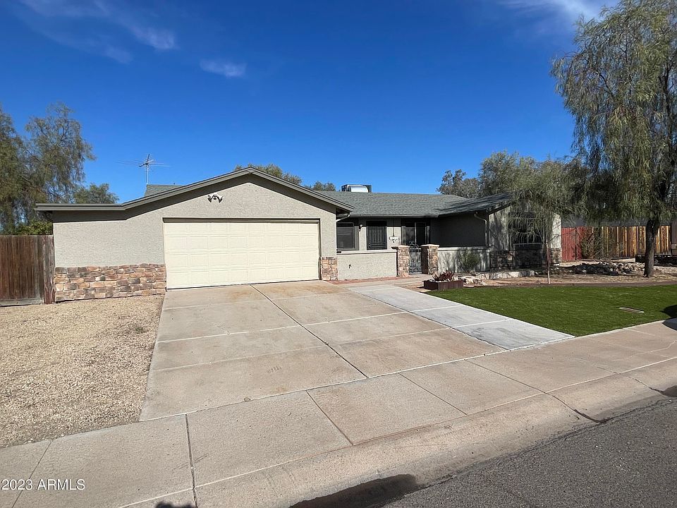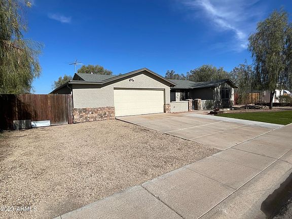 For the enterprising buyer! Rare find in Metro Phoenix, no HOA, horses ok, oversized lot with multiple uses, mature Acacia trees,, lots of storage, irrigated garden spot, extra covered parking - multi-use setup, located close to shopping! Very livable four bedroom, two bath home. Lots of kitchen space. Separate workshop off garage. Large covered patio. Recently new heat pump. Stucco, painted exterior. Coveted A-1 Zoning - bring your animals! Alleyway behind is part of bridle path for horses.