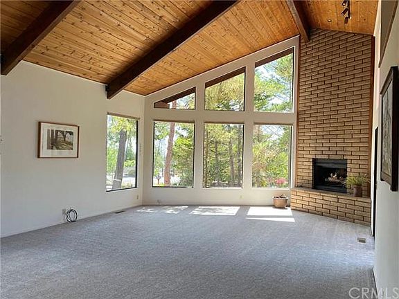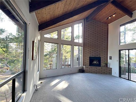 Tucked under the trees, on a verdant extra large parcel, this mostly single level home is walking distance to the west village of Cambria, and even Moonstone Beach. It is located at the beginning of Leimert Estates, known for its great weather and desirable location. The home is set so that the large yard surrounds it, with lush green views from every window. The living room height is two stories with wood beams, clerestory windows and slump stone fireplace anchoring one corner. It is a large, spacious space looking out toward the front, side and backyards. On a clear day there is a peek of ocean blue! A sliding door leads to a deck that receives afternoon sun and is central to the backyard. The most charming loft at one end provides an office space overlooking the living room. The kitchen has a walk-in pantry and adjacent is a breakfast room with windows all around it receiving morning sunshine and another peek of ocean view. Wood floors are found in the kitchen, breakfast room and hallway. There are lots of linen cupboards, two bedrooms, inside laundry room and two decks (one for each bedroom.) The primary bedroom is very spacious and overlooks the shared living room deck and backyard. It has a separate shower and soaking bathtub, walk-in closet and dual sinks. New paint and carpet make everything clean and bright! There is a two car garage at the rear of the home, and space to park an RV. This home needs some updating but with its great location and large yard it will be a complete pleasure to call it home. This location is an easy distance to Moonstone Beach and the West Village of Cambria. The living space square footage are from third part sources and the buyer should satisfy them selves with the size of this home.