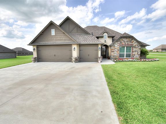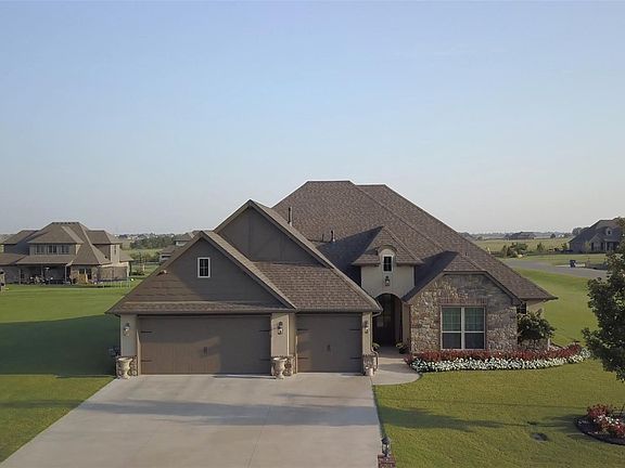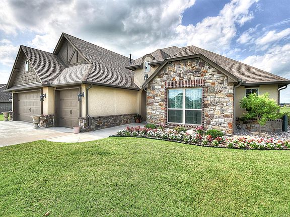 Gorgeous home on a corner lot in coveted Carriage Park. Top quality home with several great features including walk-in hidden pantry, Roman walk-in master shower, seasonal master closet, oak hand scraped wood floors, full tile surround in hall bath, above ground storm shelter in garage, sprinkler system, radiant barrier decking, post tension slab, and more. Oversized patio with plenty of room for entertaining!
