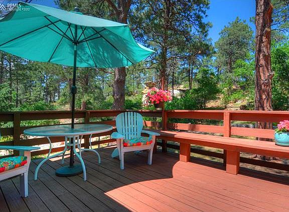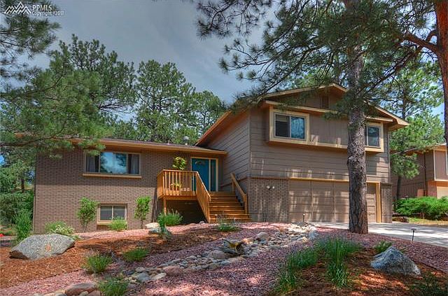 Beautiful, updated home surrounded by towering pines on a large, half acre lot, with sandstone rock outcrops! Welcome home to what feels like a private mountain retreat, yet find yourself close to everything! The "updated" list for this lovely home is enormous. New vinyl windows, gorgeous hand scraped Brazilian cherrywood floors in the kitchen, elegant crown moulding tops the abundant cabinets, gorgeous upgraded Brazilian granite counters and nearly new stainless steel appliances, that all stay! Fresh paint! Recently remodeled bathrooms with updated raised vanities, counters, lighting, mirrors, fixtures, commodes and tile. There is a great deck off the kitchen with tons of privacy! The lower level family room has a raised hearth brick gas fireplace. There are 2 beverage bars. Lots of storage and huge bedrooms with good sized closets in each bedroom. Upstairs linen closet. The exercise room in the basement could easily be converted to a 4th bedroom with its own private bath. The garage is huge and includes storage shelves and room for a workshop. The front yard has new xeriscape landscaping. There are auto sprinkler/drip systems in both front and back yards. Just a few minutes walk to Pulpit Rock Park. Don't miss this beauty in a fantastic location!