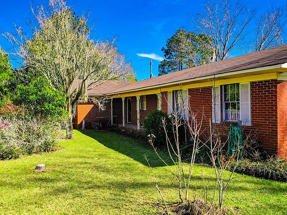 Here's a brick home featuring 3 bedrooms and 2 baths, and sits on 3 lots for a total of 3.46+/- ac with a pond and storage building. Older, but solid home. Formal living room with carpet. Family room/dining combo with vinyl flooring and gas fireplace. Kitchen with oven/range, refrigerator and dishwasher. Master bedroom with carpet and master bath is tiled with tiled shower. Additional bedrooms with carpet. Guest bath is tiled with double sinks and step down tiled shower and sunken tub. Lots of inside storage closets. Back screened porch. Double covered carport for parking with storage and laundry area. Storage building on property. Home sits on 1 ac and one adjoining lot is 1.34 ac with well/pond and other adjoining lot is 1.12 ac, and all being sold with listing. Property is an estate sale so no full seller disclosures; roof is older; AC is all electric. Fruit trees on property to include orange trees, muscadine grape vines and blueberry bushes. Call today!!!