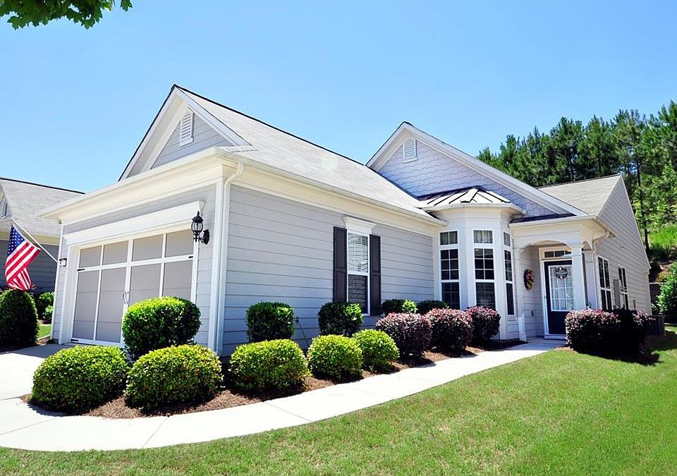 Gorgeous Gray Mist! Drenched w/natural light w/fantastic private bkyd! 2BRs,Flex RM w/closet or 3rd BR. Custom Kitch cabs, granite cntrtps,SS appls,desk workstation & view to Great RM. Delightful bay window brkfst area. Hrdwd flrs thru-out,tiled baths. Covered Patio w/extended open patio, professionally landscaped park-like lvl bkyd! 55+ Active Adult Community:multi-million dollar clubhse w/state of the art workout facility,indoor&outdoor pools,tennis crts,baseball field,playgrnd,walking trails, travel & daily activities,over 100 clubs!Walking distance to new NE GA hosp