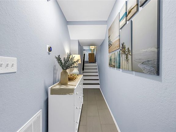 Meticulously maintained 2-bedroom, 2-bath tri-level townhome with stunning lake views, located in the highly desirable, all-ages Lake Forest community. This home is in EVAC Zone D and has never flooded—no flood insurance required. Enjoy an open-concept layout featuring vaulted ceilings, skylights, and an abundance of natural light. The spacious living area opens to an oversized screened-in balcony with tranquil lake views. The kitchen is equipped with solid wood cabinetry, granite countertops, stainless steel appliances, and a breakfast bar. This smartly designed tri-level floor plan offers privacy between bedrooms and common areas. Both bathrooms have been tastefully updated. Additional features include luxury vinyl flooring, fresh interior paint, a large laundry room with extra storage, and a one-car garage. Major system updates include: Whole-house Aquasana water filtration system Hot water heater (2024) Roof (2022) AC (2016) HOA fee includes: Roof and siding maintenance, annual termite inspection, water, sewer, trash, recycling, cable TV, high-speed internet (Spectrum), grounds maintenance, and access to the heated and cooled community pool and spa. Electricity is the only separate utility bill. Prime Pinellas County location, just minutes from Downtown St. Pete, award-winning Gulf beaches, and Tampa International Airport. Across the street is Forbes Recreation Center with racquetball and pickleball courts. Nearby Helen Howarth Park offers nature trails, a dog park, and youth sports facilities. Pet-friendly community.