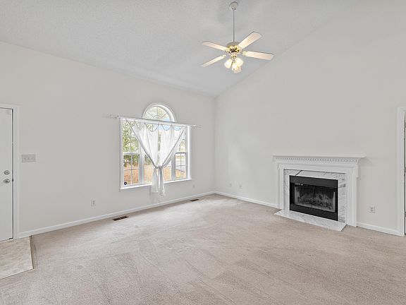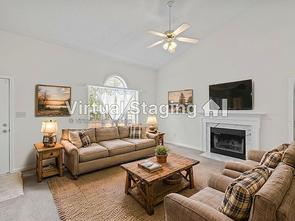 Cozy fireplaceCovered deckLarge flat backyardConvenient breakfast barSpacious open floor plan