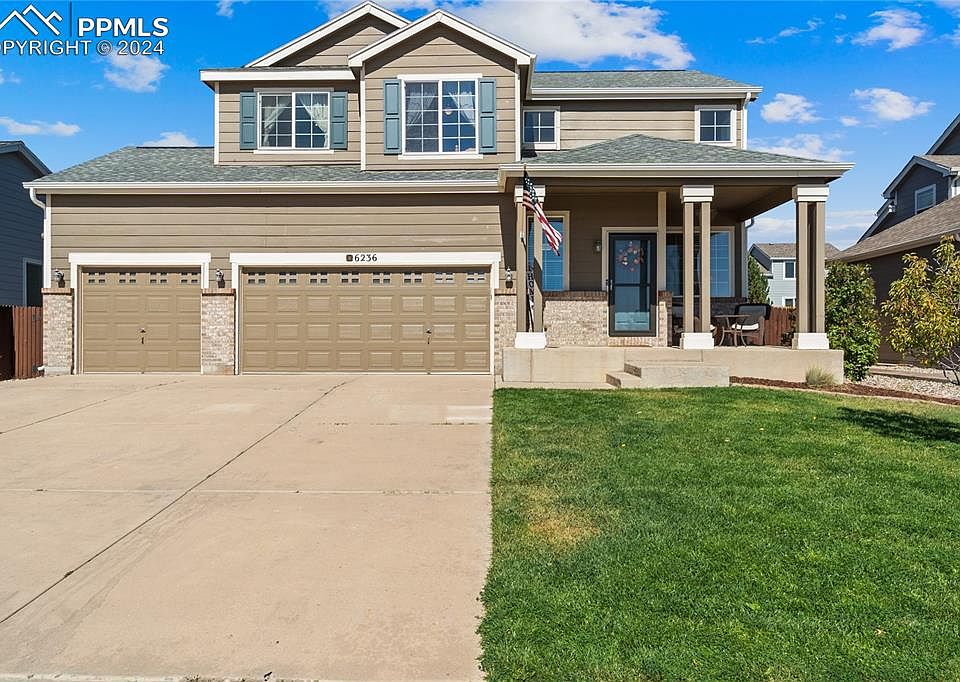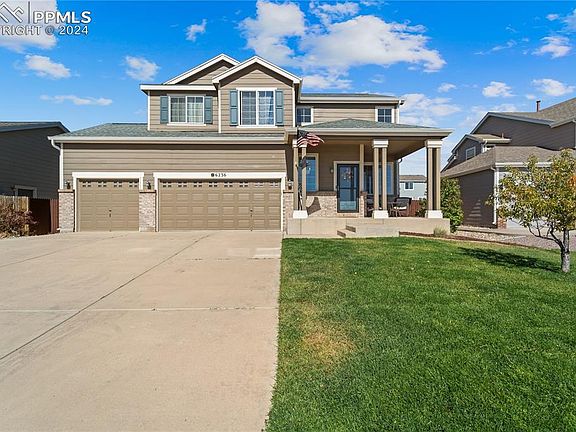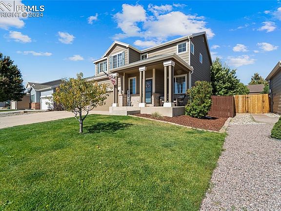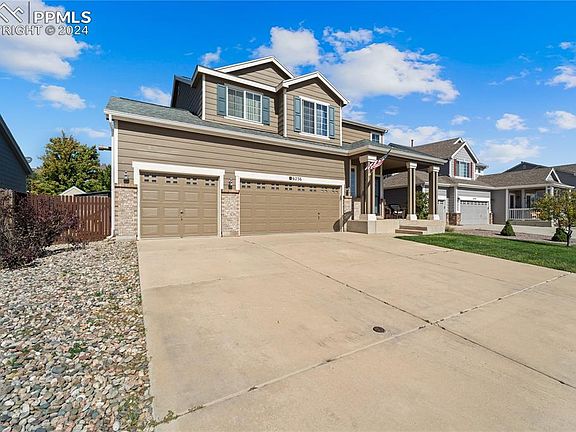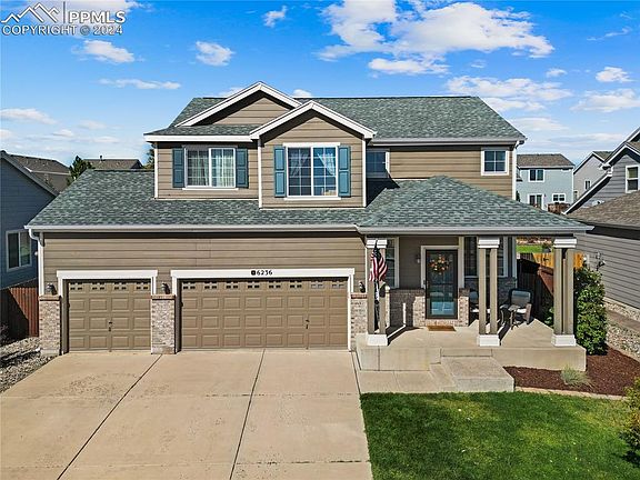Welcome to 6236 Cabana Circle, a meticulously maintained two-story residence located in the charming Ridgeview at Stetson Hills neighborhood of Colorado Springs. This spacious home offers 2,772 square feet of sophisticated living space with a perfect blend of comfort and modern amenities. The open floor plan boasts 3 bedrooms, 3 bathrooms, and a versatile loft area that currently serves as a cozy theater room, perfect for movie nights. The inviting living room features a double-sided fireplace, creating a warm and cozy atmosphere that flows seamlessly into the adjoining spaces. High vaulted ceilings lend a sense of grandeur, while large windows flood the home with natural light, offering beautiful mountain views. The kitchen is a chef’s dream, complete with stainless steel appliances and ample cabinetry. An eat-in area offers a welcoming space for casual meals, while sliding doors lead you to the covered back patio—an entertainer’s paradise with ceiling fans, perfect for relaxing evenings. The backyard is beautifully landscaped, featuring a designated fire pit area, providing a great space for gatherings under the Colorado sky. Special highlights of this home include elegant wood flooring and an attached three-car garage that offers plenty of additional storage or workspace. The primary suite features a walk-in closet, and the primary bathroom is a sanctuary with gorgeous tile accents surrounding a jetted soaking tub and a rainfall showerhead for the ultimate relaxation experience. Ideally located within walking distance to Skyview Middle School, and close to parks, and shopping, this home provides easy access to the amenities you need while maintaining a peaceful, residential charm. Whether you are seeking the perfect entertaining space or a quiet retreat, this home is ready to meet your needs. Don’t miss the opportunity to make 6236 Cabana Circle your dream home!