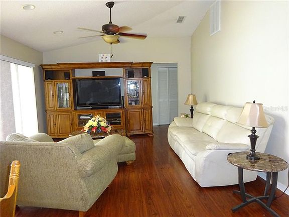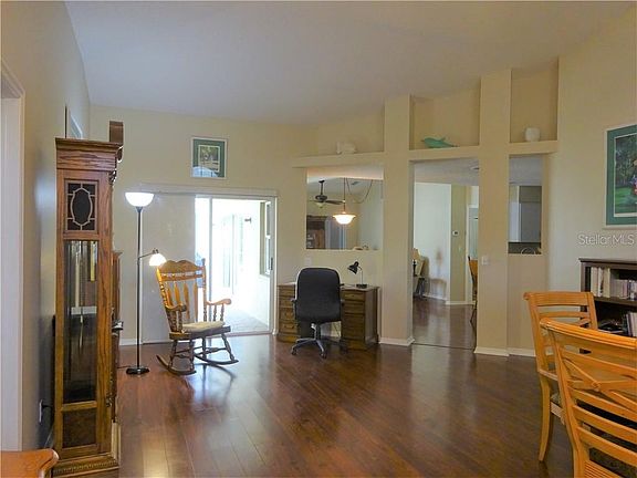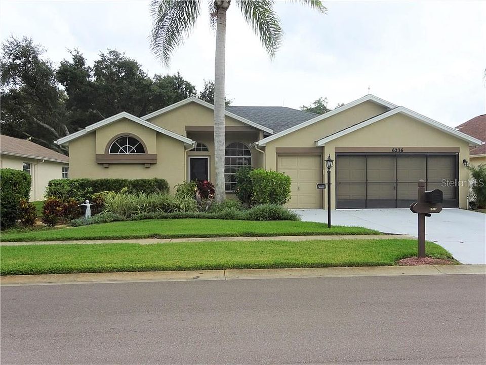 Spacious 3 bedroom, 3 bath, 2 1/2 (golf cart) car garage located in the main gate of Timber Greens. There are 3 on suites in this home. Home features laminate flooring in the living areas and in the master bedroom. It has a formal living/dining room and a separate family room great for entertaining. The kitchen features quartz counter tops. 18" tile flooring, reverse osmosis water filtration system for drinking and cooking. Easting space in the kitchen and at the counter. The large master bath features a garden tub, separate shower, large vanity with double sinks and a private water closet. The pool/spa/lanai can be accessed from the master bedroom, the living room, the family room and the convenient pool bath. Updates include: roof 2016, solar roof vent 2016, ac 2016, water heater 2019, remodel mster bath 2018, 4 interior rooms painted 2020, whole house water filter/softner 2019, new screen garage door 2020. Enjoy the gas heated pool/spa area with a private view of the pond and conservation area. The over sized garage offers a separate door for golf cart storage. Timber Greens is an active 55+ community with an 18 hole championship golf course providing women's and men's golf leagues. There is a restaurant and bar, tennis courts, shuffleboard, pickle ball, boccce ball, huge resort style heated pool and spa, fitness center, arts and crafts room and a library. Bowling league, card socials, bingo, women's club, water aerobics are some of the many activities offered. Community is also adjacent to 8,000-acre Starkey Wilderness Park with recreational activities and biking trail.