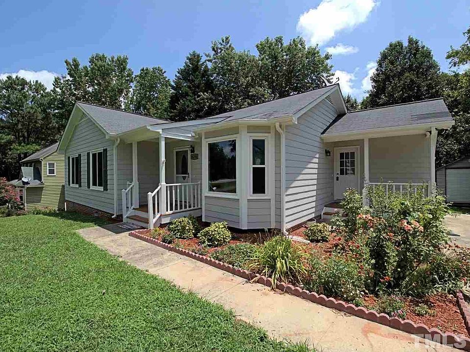 Home shows great! Brazilian Cherry laminate flooring thruout except bathrooms. Painted kitchen cabs, solid surface kitchen countertops, tile b/s. Vinyl windows new 2014 purchased from The Alum Co of NC. Have a warranty that transfers to 1 owner. Exterior painted 2019 and any damaged hardboard siding was replaced w/fiber cement. Roof replaced 4/08 - more recent wind dam areas was replaced. Partially fenced back yard. Interior painted 2019. Ceil fans thruout. W/D & refrig remain. Move in & enjoy!!