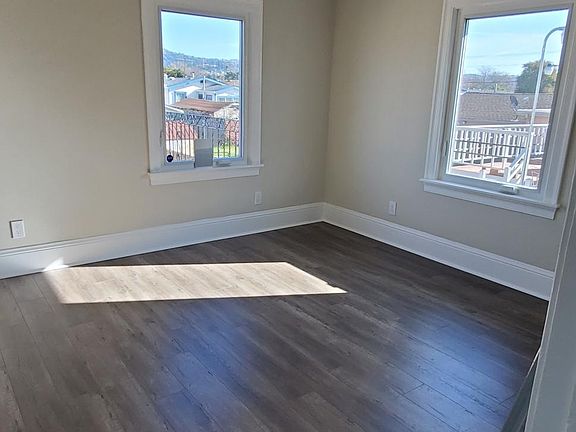 Features: - Upstairs Unit of a Duplex - 2 Spacious Bright Bedrooms - Stone Counter Tops in Kitchen - All New Stainless Steel Kitchen Appliances - Brand New Kitchen Cabinets - Eat-in kitchen - New Tiled Bathroom with Brand New Fixtures and Tub - New Double Pane windows - New Laminate Flooring - All New Light Fixtures - New Roof - New HVAC - New Patio/ Porch Area - WiFi Included - One Designated Parking Included in Secured Gated Area - Spacious Fenced in Backyard - Brand New Metal Security Gate - Brand New Security Mail Box - Shared Spacious Backyard/ Patio, to enjoy a lovely evening - Brand New Washer/ Dryer - Fresh New Paint and Molding - New Wood Blinds Location: oakland-ca/ - Easy access to Freeway 580, 880, 13 - 10-minute drive to Downtown Oakland Berkeley San Leandro Hayward Castro Valley. - 5 min Walking Distance to Bus - 9 min Walk to Shop Rite Super Market - Biking distance to Fruitvale Bart Station - Close to Mills College, Holy Names University, Mills College- 5 min drive - WiFi Included - One Driveway Parking in Secured Gate. - Security Cameras - Tenant to pay PG&E. Landlord pays: landscaping, water, trash, ADT security, WIFI - No Eviction Record - Absolutely No Smoking - No Pets - Minimum 12-month Lease - Tenant Required to Carry Renter's Insurance Policy ($500K liability)