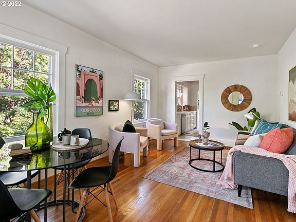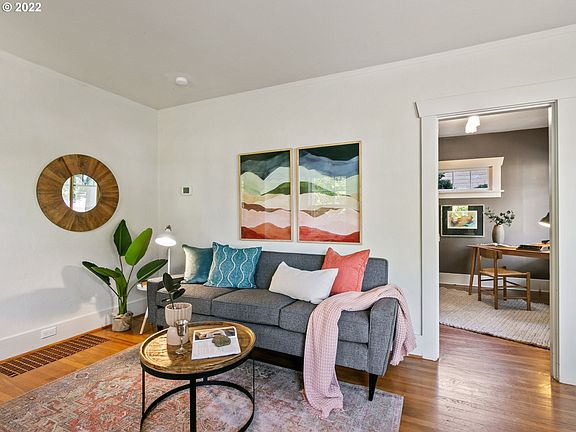 Offer received - deadline of 6pm Monday, Sept. 12. A covered front porch welcomes you to the light-filled living room, wood floors, & tastefully renovated bathroom. There's room for everything with ample storage in the kitchen, basement & oversized garage. The corner lot has a fenced backyard with abundant mature landscaping: paperbark maples & colorful jasmine, hydrangea, & fuchsia. Plumbing, sewer, & electrical have all been updated - just move in & enjoy! [Home Energy Score = 6. HES Report at https://rpt.greenbuildingregistry.com/hes/OR10204300]