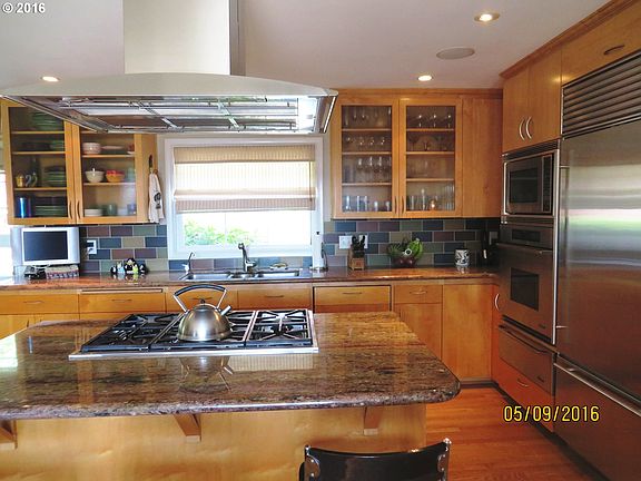 Beautiful contemporary home with spectacular views. Features hardwood floors, large kitchen, six burner gas range, granite countertops, stainless steel appliances, island, wine cellar w/climate control, A/C, professionally landscaped on large lot.