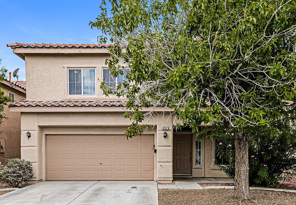This newly renovated Las Vegas rental home includes an attached two-car garage and a covered front porch. The interior boasts an open floor plan, complete with vinyl plank flooring and vaulted ceilings. The fenced-in backyard contains a covered cement patio with glass doors allowing you to enter the kitchen. This beautiful and functional area contains a walk-in pantry, dark wood cabinetry, quartz countertops, and stainless-steel appliances. The spacious living room features plenty of windows for natural light and a lovely staircase leading up to the second floor, where you will find the comfortable master bedroom that overlooks the backyard. The adjacent bathroom offers dual vanity sinks, a huge walk-in wardrobe, and an oversized tub. Schedule a tour today.