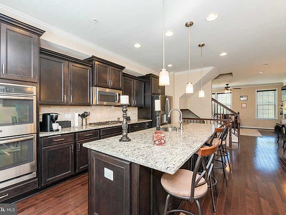 This impeccable end of group townhome offers bright and open living spaces! Entry level features a spacious, sun-filled flex room, ideal as a home office or family room. Ascend to the main level hosting open dining and living areas with cozy gas fireplace and gourmet kitchen with espresso crown topped cabinets, stylish subway tile backsplash, full GE stainless steel appliance suite including double ovens, oversized island, and access to sizable Trex deck! Upper level offers two expansive bedrooms, including a tranquil owner's suite with lavish full bath featuring an oversized frameless glass shower with built-in bench seat, rain shower head, and granite double vanity. Private suite on the 4th level features a comfy 3rd bedroom with double closets and an open loft space ideal for enjoying movie and game nights with access to the rooftop deck offering winter views of the Baltimore skyline and New Year's Eve fireworks displays! Great location, convenient to commuter routes, shopping, dining and more!