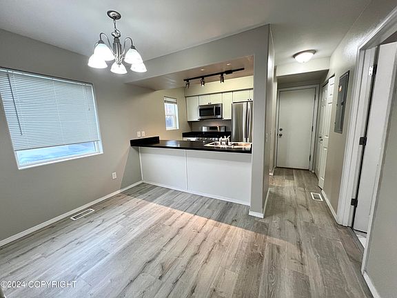 Move-in Ready recently updated condo. Open concept dining, living and kitchen. Primary suite has walk-in closet and full bath. 2nd bedroom has WIC as well. Kitchen is updated with breakfast island and pantry. New paint in 2021. Centrally located easy access to JBER and hospitals and colleges. Two dedicated parking places in front of condo. Backyard is low maintenance, fenced, and has storage.