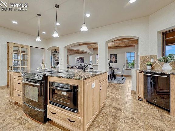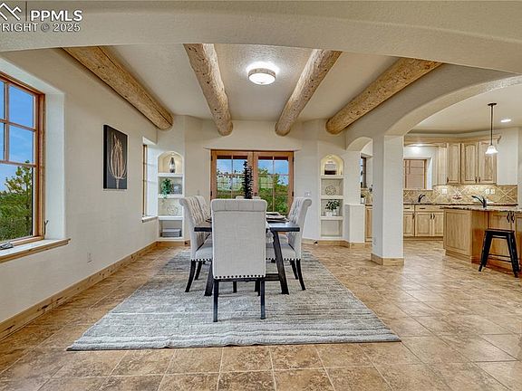 Introducing one of Douglas County’s most remarkable estates, newly presented and unlike anything else on the market. Set on 38 private acres, this Pueblo Revival residence blends the soul of Santa Fe with the serenity of Colorado living. From the moment you arrive, every detail speaks to craftsmanship and calm; custom double-wood doors, tiled roof, curved stucco siding with wood and stone accents, all evoke timeless Southwest artistry. Inside, soaring beamed ceilings and tile floors welcome you into an atmosphere of quiet elegance. The great room, living, dining, and kitchen, flow together seamlessly for everyday comfort and effortless entertaining. French doors on both sides connect indoor spaces to a covered patio and a sun-drenched balcony, ideal for morning coffee or sunset gatherings. Upstairs, a light-filled loft opens to unparalleled 360° mountain views from Pikes Peak to the northern Front Range, the kind of panorama that stops conversation and stills the mind. This space offers flexibility as an additional bedroom, creative studio, or lounge surrounded by endless sky. The main-level primary suite is a true retreat with its own Kiva fireplace, private terrace, spa-inspired bath, and generous walk-in closet. Downstairs, a bright guest bedroom and full bath share the level with a versatile bonus room, perfect for a home theater, fitness area, office or add an additional bedroom! The land itself tells its own story: rolling hills, privacy, and enchanting views in every direction. Whether your vision includes horses, a barn, an RV setup, or simply open space to breathe, this property offers possibility without compromise. Evenings by the firepit under brilliant Colorado skies remind you, this is more than a home. It’s a destination and a once-in-a-lifetime offering ready to be discovered.