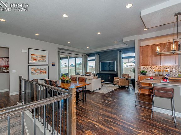 Welcome home to our former Conifer model with upgrades all throughout in The Retreat, a private 55+ community in Banning Lewis Ranch. Upon entering this ranch style home, you will find an open foyer adjoined to the kitchen, dining and great room area. Access our signature Colorado Room, which is a covered patio with floor to ceiling sliding doors you can access from the primary suite or great room, making this main level home feel light, open, and inviting. What great ranch plan is complete without a large master suite, spa bath and walk in closet. Walk into the Colorado Room from the primary suite to enjoy your morning coffee or summer nights. Have extra space for your office, craft space, pet retreat in the main level flex space complete with a barn door. The kitchen features a large granite island perfect for quiet nights in or large gatherings, under cabinet lighting, and all appliances making this home truly move-in ready. The basement opens up to the Activity Center and a guest bedroom and bathroom. This home also features bull nose corners throughout. *Former Model*