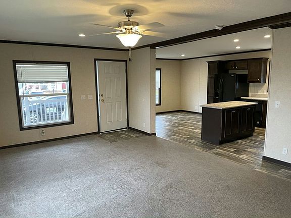 Timing is everything and we have a fantastic home waiting for a new owner. This 2020 Skyline home has a great location with no rear neighbors, and a private back yard. You enter from the covered front porch into the large family room and open concept floor plan. You'll notice the large windows as you walk through the home. The expansive kitchen with a handy island, lot of cabinets space and countertops set up perfectly for entertaining family and friends. As you walk by a closet, first door is your side door entrance and laundry room set up for your washer/dryer.Just down the hallway, the first bedroom has with a nice size closet. The second bedroom is larger and offers walk in closet. Next to bedroom two is a full bathroom with full tub surround and vanity. The rear of the home you will find the large primary bedroom. Once inside, you will find a deep walk in closet along with full private ensuite. The ensuite offers you a large double vanity, double mirrors,storage rack and step in shower with two seats. This is a large home with a great price ready to go now. Call the sales office to set up your private viewing and get ready to move in while it's still available!