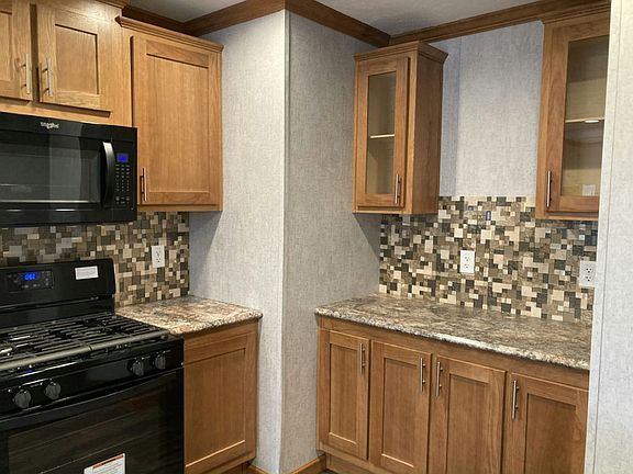 The Woodlands community has several new model homes available for sale and this is perfect time to start out the year in your own home! This home, The Saratoga offers all the latest in new home ownership at half the cost of a site home anywhere in the area. This home Features a covered front porch, open floor plan and three bedrooms,two full bathrooms and large family room complete with wall to wall solid oak entertainment center. You will love the large kitchen with it's 8' kitchen island, large enough to seat 4-5 . Below,five large storage cabinets to fit all of your equipment. A cooks kitchen, with additional counter space, glass door cabinets on either side of your microwave oven,built in dishwasher,gas oven range and side by side refrigerator/freezer. There is also a handy pantry just around the corner. Down the hallway, the laundry room with hookups for washer/dryer and two nice sized bedrooms. The first full bath features a surround tub/shower and full vanity. In the rear of the home is the primary bedroom that offers a large ensuite complete with step in shower, walk in closet and large linen closet. Call now to arrange your own private touras our new homes move quickly!
