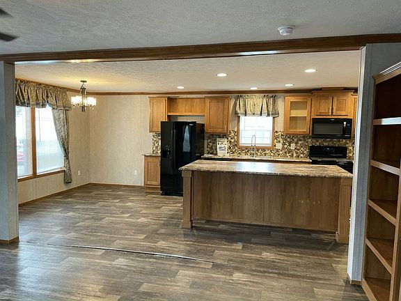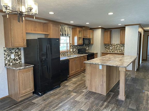 This home features a wide open floor plan and a large cooks kitchen that include, glass and stone backsplash, glass pane window doors on some cabinets, and loads of work space throughout the kitchen. The huge eight foot kitchen island also allows for additional seating and additional storage for your cooking equipment. Other features include a floor to ceiling entertainment center in the family room with storage cabinets that offer great space for family and friends to gather. Just down the hall is the laundry room with washer/dryer hookups along with all of the utilities in one area. This is also you second side door entrance, a perfect mudroom entrance from your side yard. Across the hall are two bedrooms and the first full bathroom. A full size easy to clean one piece tub surround and full vanity are easy access from the bedrooms and kitchen area. In the rear of the home you will find the primary bedroom. This room offers a large private ensuite with a deep walk in closet, large vanity, full size linen closet and step in shower with two seats. Now is the time to become a homeowner, call now or stop in to tour our beautiful affordable homes today!