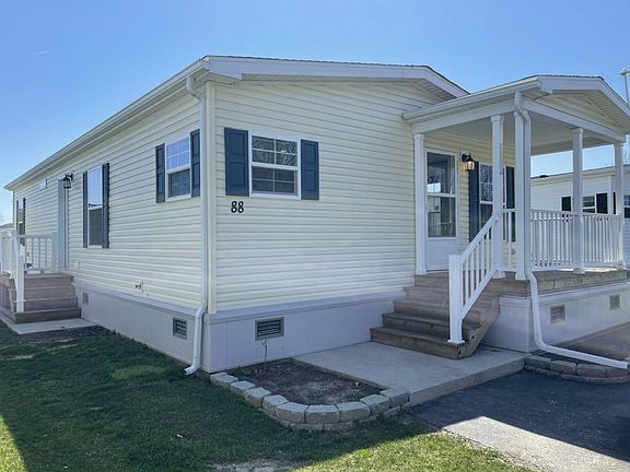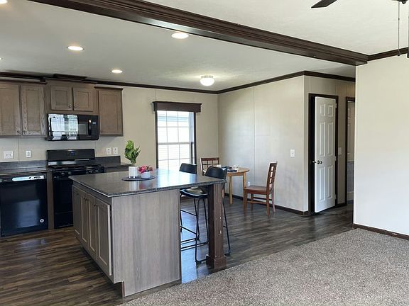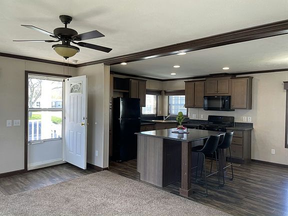 Coming Soon!! Now is the time to consider becoming a homeowner. This three bedroom, two bath double section home is located in Fox Circle in a quiet and friendly neighborhood in the Woodlands community. The front covered porch leads into the family room steps away from the off street parking area. The large wide open floor plan allows for great space for family gatherings and entertaining. The kitchen area features an oversized working island and additional seating, storage and is perfect for meal prep. Lots of storage throughout the kitchen along with an area to set up your dining room. Down the hallway you will find the laundry room complete with washer/dryer hookups, hot water tank, furnace and a deep sink. This room also acts as a great mudroom entrance during wet weather days. Across the hall there are two nice sized bedrooms with closets that share the first full bathroom with full tub/shower surround and a full sized vanity. The rear of the home is the primary bedroom featuring a large closet,private ensuite with step in shower. This home is priced to sell quickly and is in great shape. Call us today to set up an appointment to tour and learn more about becoming a homeowner at a fraction of the cost elsewhere!