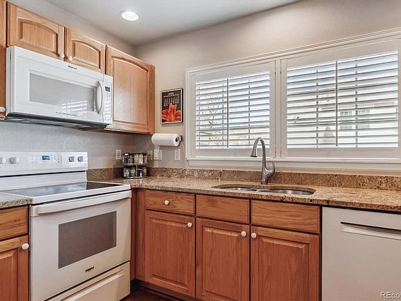 Exceptional quiet, interior location just steps from open space with a walking trail. Beautifully updated interior. Upon entering this fabulous home, you are greeted with a spacious 2 story living area filled with natural light. Features include gleaming hardwood floors on the main level, custom shutters throughout, skylights and high ceilings. Main floor laundry room. The open kitchen is highlighted with slab granite, soft close cabinets, Bosch dishwasher & MORE! The upper level includes an incredible loft with skylight that is ideal for a home office or den, a secondary bedroom with high ceilings & walk-in closets, an updated 3/4 bath and the Primary suite. The expansive Primary suite features double closets, and a gorgeous en-suite 5 piece bath with newer frameless shower enclosure, beautiful tile flooring, lighting & fixtures. The finished 2 1/2 car garage with its painted floors has ample space for storage, boxes, etc. Enjoy the front private patio which is perfect for relaxation & outdoor gatherings. The full unfinished basement offers plenty of potential with its egress window & rough-in plumbing. Off street parking is conveniently located just steps from the garage. Other upgrades include rounded corners throughout, newer baseboards, carpet, furnace, central air, humidifier, duct cleaning, interior paint, outdoor light fixtures & MORE! Settlers village is located close to restaurants, shopping, parks, rec centers, C470 & I-25. Must See!