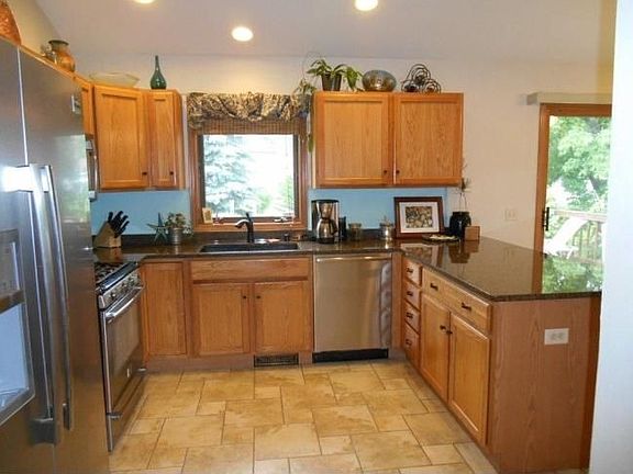 Have it all in your first home! Upgraded kitchen w/ granite, stainless & tile. Vaulted ceilings, on a great lot w/mature trees and privacy. 3 bedrms, 2 baths. Over 660 sq ft exposed can be finished to include an add'l bath, bedrm(s) and family room w/fireplace. (Plus 660 more non-exposed!) Custom deck & landscaping. All within blocks of 3 parks and easy walking distance to the GREAT DANE!