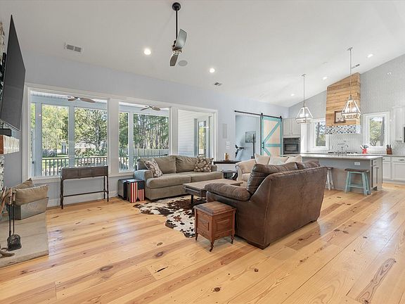 Situated on 9 beautiful acres 20 minutes from West Ashley and 25 minutes from Edisto Beach, this custom home is a private paradise with endless features and upgrades. The home's beautiful exterior greets you with elegant copper gas lanterns, cedar shutters and window boxes. Inside welcomes you into a breathtaking open concept with vaulted ceilings through most of the home as well as 10ft walls and 8ft doors throughout. Exquisite pine floors (12in wide and up to 12ft plank lengths) extend throughout the house. The living room features a gorgeous stone, wood-burning fireplace and in-wall surround sound. The designer kitchen showcases a handcrafted range hood, elegant backsplash carrying up to the vaulted ceiling, pre-sealed and leathered quartzite countertops, island, pot filler, double oven, gas range, stainless steel appliances, large farm sink, and walk-in pantry. The primary bedroom includes a vaulted ceiling and oversized windows overlooking the beautiful backyard. The ensuite bathroom includes separate dual vanities and connects to incredible his and hers closets. A free-standing Generac ensures this dream home maintains power, automatically powering the house within 15 seconds of outages. Enter the backyard through a large screened-in porch, and behold your private resort! 1000 sq ft of travertine surrounds a stunning saltwater pool with grotto, waterfall, large sun ledge, and AC/heating unit for nearly year-round use. Outdoor surround sound elevates this oasis for maximum entertainment. Additional features include a 60ft by 30ft, 3-bay second garage (220 power) for an amazing workshop & equipment storage. The backyard is wonderful for pets with a custom doghouse with AC/heat and a plumbed water bowl that refreshes water every 30 minutes. This magnificent property affords peace and privacy while delivering luxury, amenities and upgrades. Life is good at 6238 Spring Grove Rd!