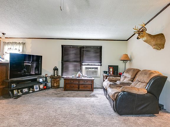 This Great Open Concept Home is located on 5 Amazing Acres! Offering 4 Bedrooms, 2 Baths, Including a Primary Bath w/Laundry, Large Kitchen & Livingroom w/Vaulted Ceilings, Primary Bedroom on One End & 3 Additional Bedrooms on the Other End. Fantastic New Front Porch, New Roof Earlier This Year, Oversized 2-Car Garage Has a Workshop and Provides Lots of Room for Projects! Come take a look as it won't last long.