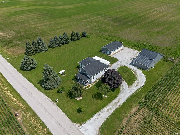 This charming farmhouse sits on a full acre and has been fully updated. It features 2 bedrooms and 3 bathrooms, with a huge master suite that includes a walk-in closet, double showers, and sinks, a bathtub, and gas fire place. The main floor has an open layout with a beautiful kitchen, granite island, and concert countertops. Step outside to the back deck with a bar, great for relaxing or entertaining. Outside you'll find a 4 car detached garage with a Heating and cooling plus a wood burning stove. A large pole barn with a gas furnace, wood burning stove, bar area, and a loft. Plus an extra shed for additional storage. Home, garage, & pole barn have new roof and siding (2025), new garage windows (2025), new upstairs carpet (2025), new sump pump (2024), Back deck repainted (2025)