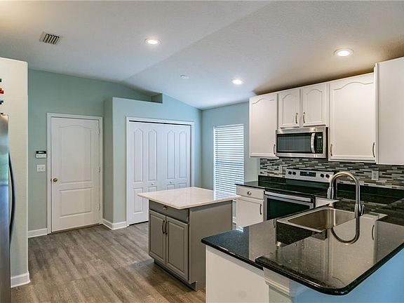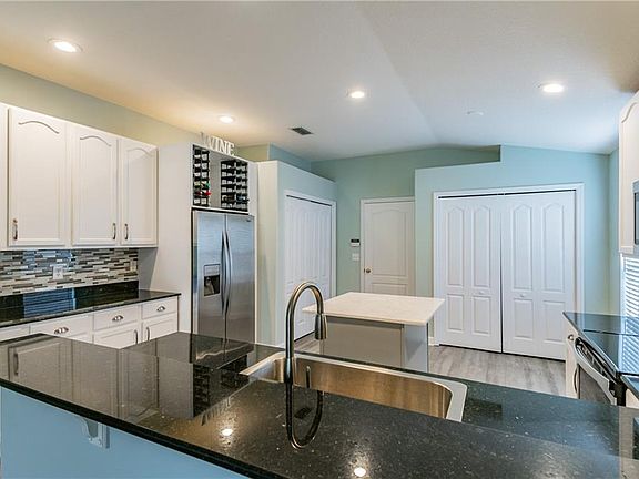 Move right into this recently updated 3 bedroom 2 bath villa. As you enter the foyer, you will be greeted by the beautiful latest in luxury wood grain vinyl plank flooring, which caries throughout the home, except for the tile bathrooms.The newly remodeled kitchen with island, has granite counters, solid wood cabinets, stainless steel appliances, and breakfast bar all highlighted with a beautiful backsplash. The large living room/dining room with sliding doors opening to a enclosed lanai allows plenty of space for entertaining both family and friends. You will enjoy the spacious master suite with a vaulted ceiling and the master bath includes dual vanities, generous walk in shower and walk in closet. The secondary bedrooms are away from the master, allowing privacy to all. Feel free to come and go as you please, as lawn and landscape as well as exterior painting is included in your low HOA fees. Conveniently located minutes from I-75 & I-275, The Grove shopping center, Florida Hospital, Wiregrass Mall, Tampa Premium Outlet Center, new Community College campus and all the great shopping and restaurant options found in Wesley Chapel/New Tampa are, as well as USF, downtown Tampa, and Tampa Airport.